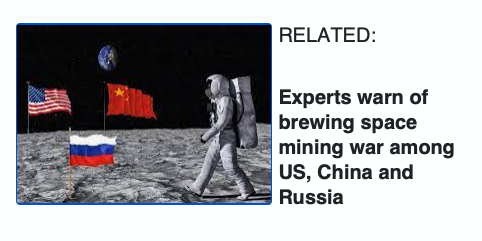 “The biggest risk is you have two opposite set of rules,” he said. “You could have a Chinese company on the moon in the 2030s claiming territory with a resource on it, in the same way the Chinese have claimed the entire South China Sea.”
