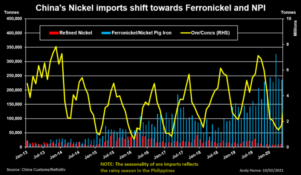 It’s not that China isn’t buying lots of nickel. It’s just that it’s buying lots of raw material, leaving the refined market undisturbed.