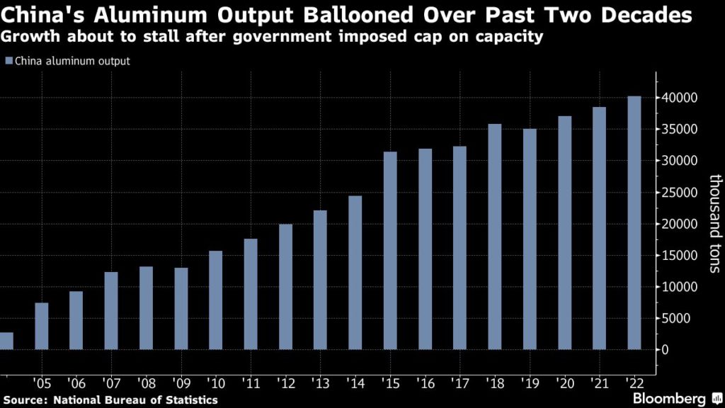 China accounts for more than half of global aluminum output after breakneck growth this century to feed its urbanization. But the expansion is coming to a halt with the industry set to reach an annual maximum capacity of 45 million tons, imposed by Beijing to prevent oversupply and get rid of older, more inefficient plants.