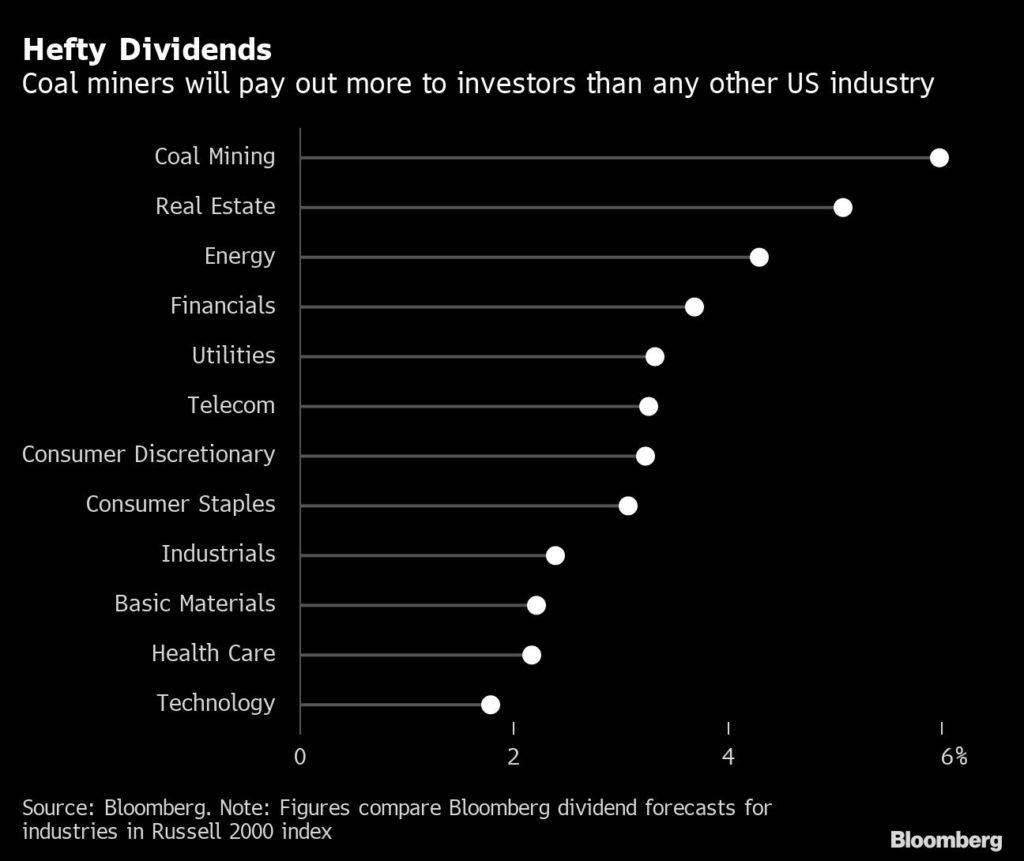 Miners of the fossil fuel are raking in cash and paying out hefty dividends, with shares surging as the global energy crisis boosts coal prices to record highs. US coal producers are projected to offer an average return of about 6% to investors over the next year, more than any other industry. That’s led by Arch Resources Inc., which is about to distribute a substantial $10.75-a-share payout.