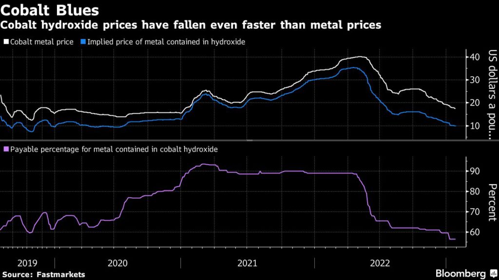 The crash has also been amplified by changes in the way that cobalt is priced. Until 2018, top producer Glencore Plc typically priced its hydroxide at a fixed discount to metal under annual contracts, but some customers looked to back out of the deals after a wave of new supply caused discounts to widen dramatically in the spot market, according to people familiar with the deals.