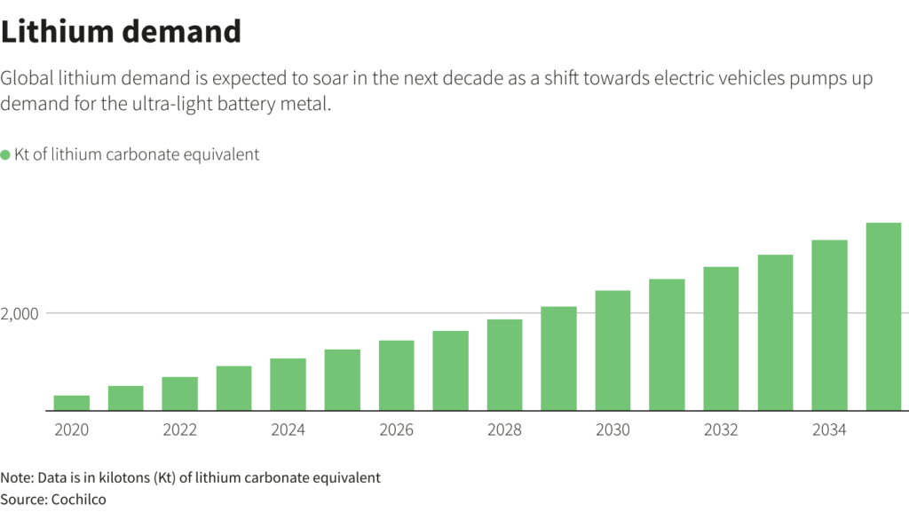 A presentation by the state-run entity showed annual global demand at 3.8 million tonnes by 2035, far exceeding estimated worldwide production of 2.46 million tonnes.