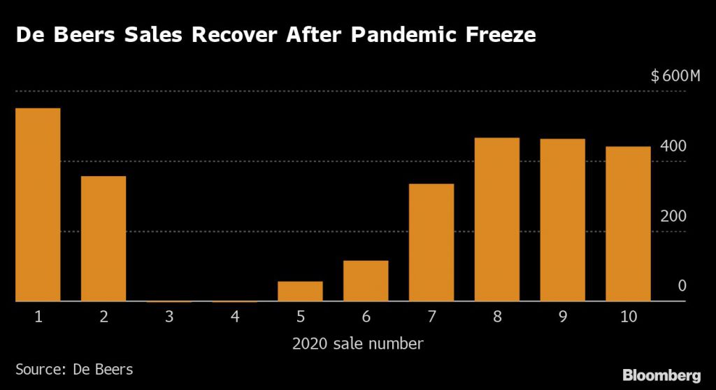 There were signs of recovery in the fourth quarter of 2020 as rough-diamond buyers started replenishing stocks to prepare for the industry’s most important selling period: Thanksgiving to the Chinese New Year. De Beers’s business started rebounding, and the Anglo American Plc unit was able to edge prices higher in the last sale of the year in December.
