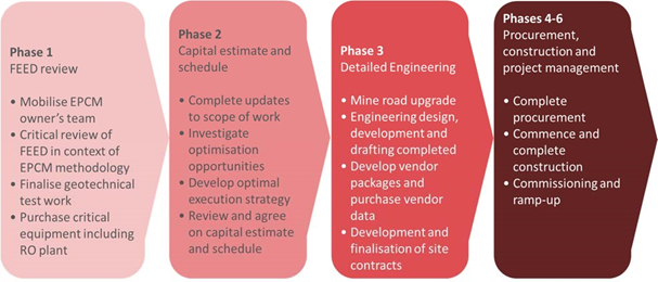 DRA will be responsible for all aspects of design, project management, procurement, construction management and supervision as well as commissioning of the complete process plant and associated infrastructure, including provision of all temporary construction facilities. DRA will also be responsible for awarding major contracts such as early works, earthworks, structural, mechanical, piping, electrical and instrumentation works, laboratory and permanent camp (including life support, freight and logistics).