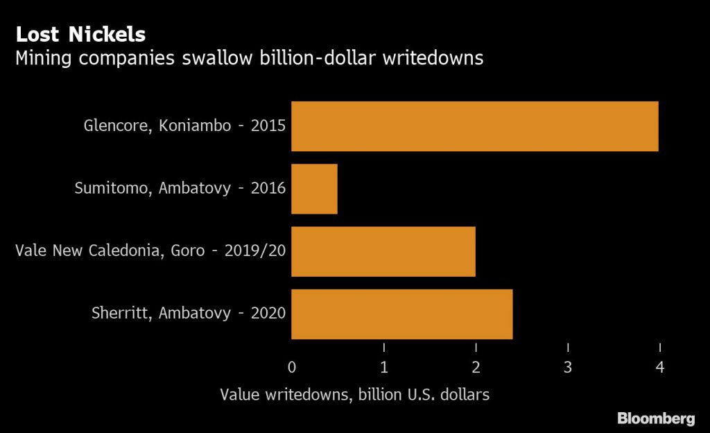 Compounding the challenges, many of the mines brought online in recent years face financial and technical problems. Analysts including Jim Lennon, senior commodities consultant at Macquarie Securities, say it’s doubtful major companies will sign off on new nickel projects while prices are low and the threat of further impairments on existing assets looms large. Sumitomo Corp last month wrote $500-million off the value of its Ambatovy mine in Madagascar.