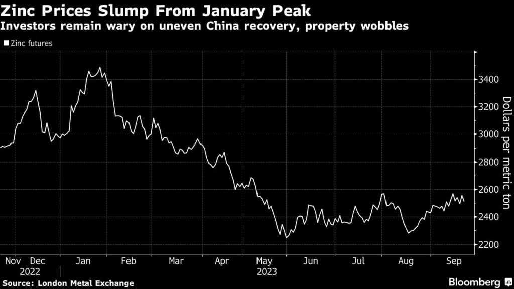Futures have risen in the last few weeks but have still fallen by about 30% from a January peak because of China’s uneven recovery and the prospect of more supply coming on line. Volcan in July said it was suspending its Islay mine in central Peru, joining a string of producers to curtail production amid weaker prices.