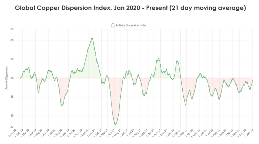 Elevated energy prices continued to hit smelting in Europe and Africa, which registered a dispersion index of 33.9 for the full year 2022, a record low for any regional dispersion index in the history of SAVANT data.