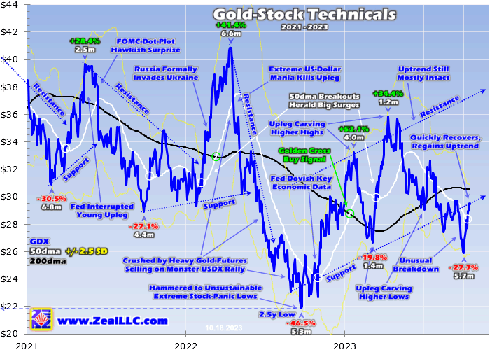 That won’t just come in the leading ETFs like GDX, but individual gold stocks. If Newmont or any other gold miner reports Q3’23 results way better than either expectations, the prior Q2’23, or the year-ago Q3’22, institutional investors should flock into those gold stocks. Their likely-sharp gains will amplify GDX’s upside, hastening the herd shift back to bullish psychology which will greatly increase buying.