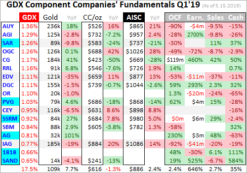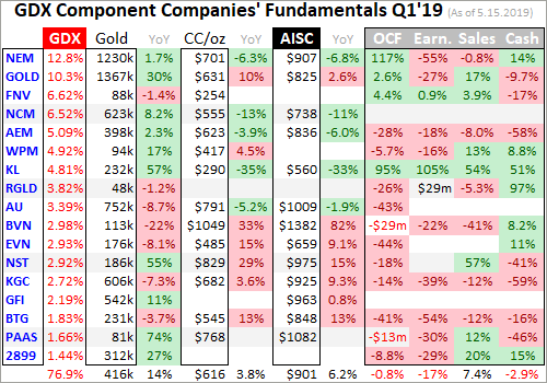 Gold Miners’ Q1’19 Fundamentals