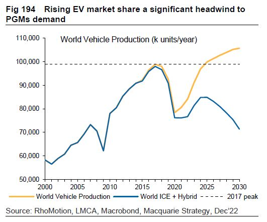 Rising EV production is a headwind to palladium demand