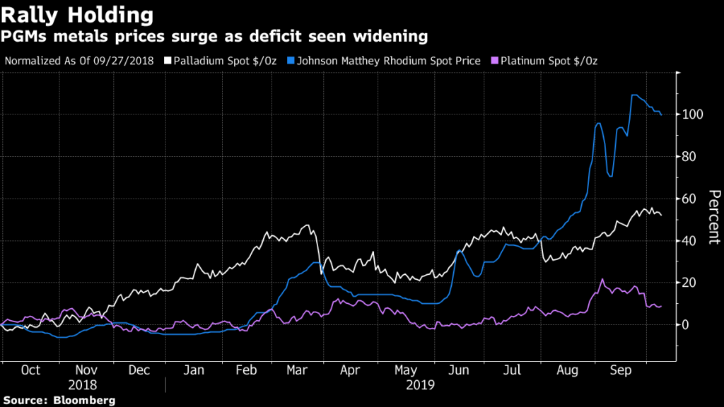 Palladium traded at about $1,645 an ounce as of 2:11 p.m. in London, after climbing to a record of $1,701.93 last week. Implats has almost tripled in value this year, making it the best performer on the Johannesburg stock exchange. The shares were up 0.2% on Tuesday.
