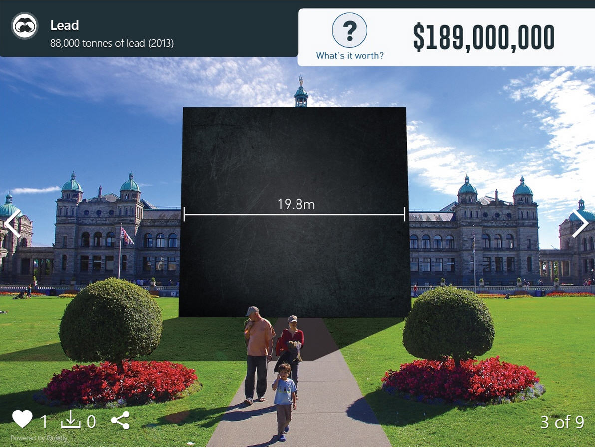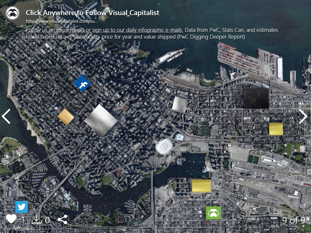 We’ve received numerous requests from folks in our hometown of Vancouver, BC to show how much resources are extracted in British Columbia. As you can see in the above slideshow, we have covered gold, silver, zinc, molybdenum, copper, lead, metallurgical coal, and even wood products.