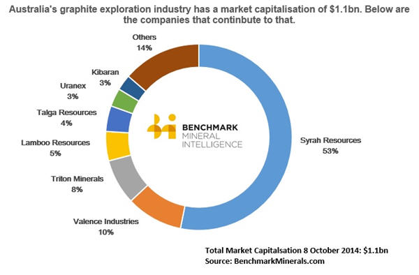 While the combined market cap of graphite companies in Canada has fallen by approximately 20% to around $520m in 2014, the value of Australian-listed juniors has boomed 120% to $1.1bn in the same period of time (October 2014 data).