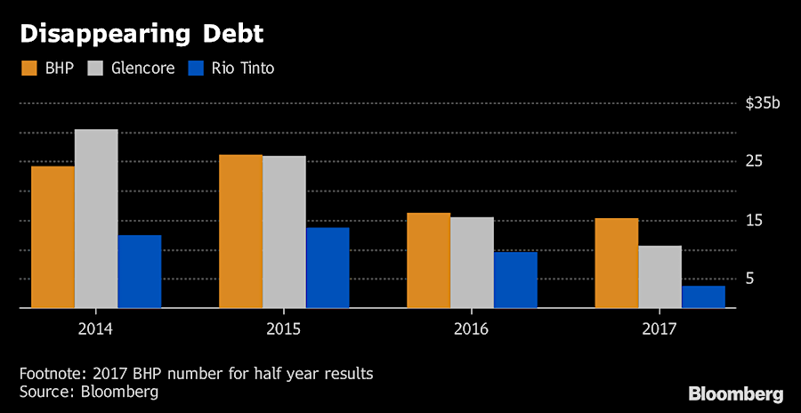 All that cash has also helped them drastically cut debt. Glencore Wednesday said it had lowered borrowing by almost $5 billion in the last year and by almost two-thirds since 2014.