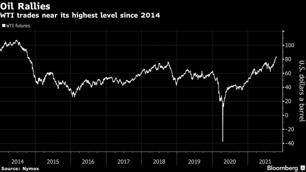 Oil soared to the highest since 2014 this week on concerns that rising consumption is racing ahead of supply. The shortage of natural gas and coal is triggering extra demand for oil products. Meanwhile, OPEC and its allies once again failed to pump enough oil to meet their output targets, exacerbating the supply deficit as the world recovers from the coronavirus pandemic.