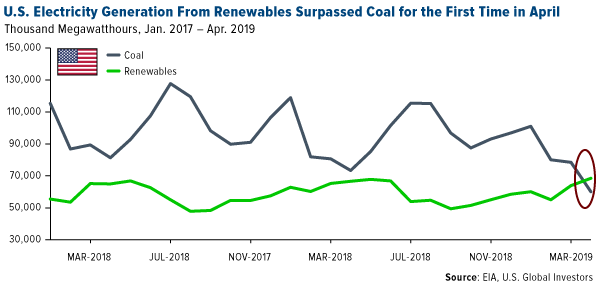 And while I’m on the topic, for the first time in U.S. history, the amount of electricity generated by coal in April fell below that of renewables such as wind and solar.