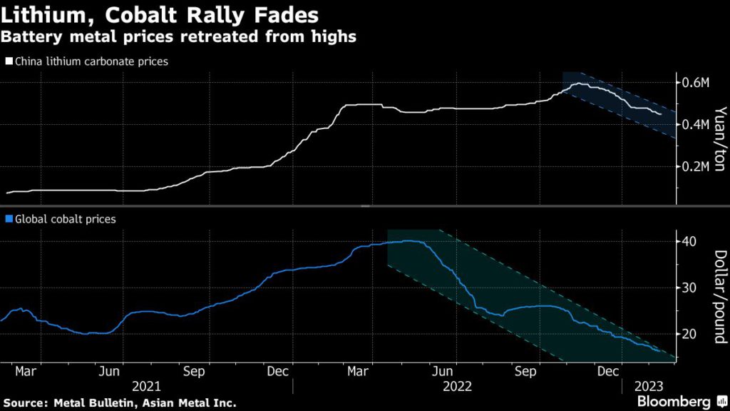 Following a 45% rally in 2022, nickel has slumped 11% on the London Metal Exchange this year, making it the worst performer among the main six metals traded on the exchange. In China, lithium-carbonate prices have also been in retreat, plunging almost 25% from a record in November.