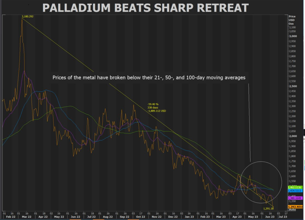 “There’s a lack of interest in the palladium market. The market is short, which essentially implies that the algorithms are following the trend downwards,” said Bart Melek, head of commodity strategies at TD Securities.