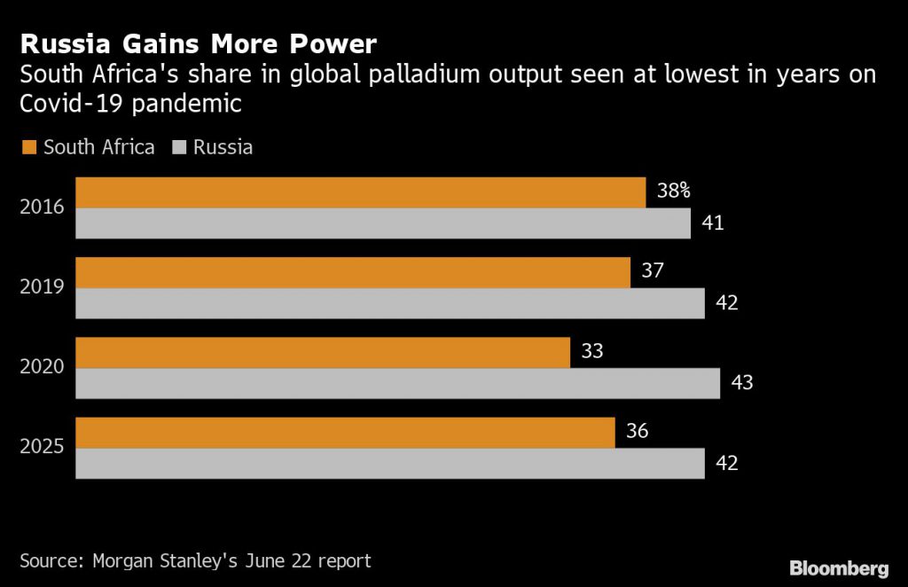 Shortfalls will start to emerge again in early 2021, according to Nornickel. With South African miners scaling back on new projects, it may take six to seven years for the nation’s palladium output to recover, according to Rene Hochreiter, analyst at Noah Capital Markets Ltd.