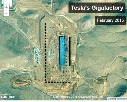 Gigafactory construction in February 2015. Source: CartoDB via Mashable