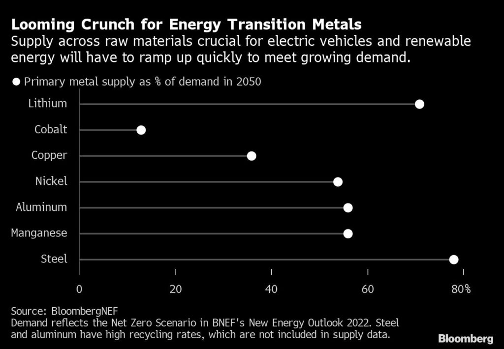 Availability and costs of crucial battery materials like lithium, cobalt and nickel have been key concerns for years among EV makers trying to build out their electric lineups. The issue has gained more urgency in recent months due to rising competition to strike supply pacts with miners and project developers and by wild swings in raw material costs. The spot value of lithium consumption alone surged to about $35 billion in 2022, from $3 billion in 2020, according to Bloomberg calculations.