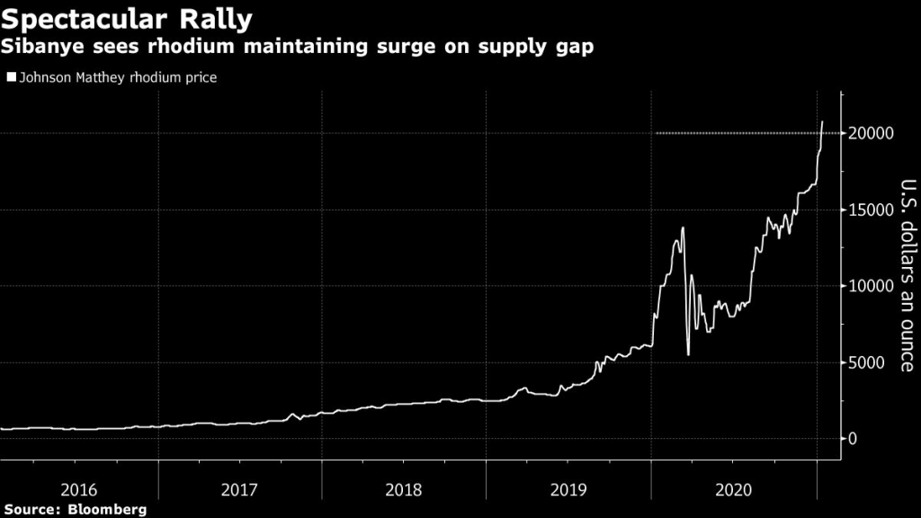 As for rhodium, the world’s priciest precious metal that climbed to a record on Thursday, its rally could continue, according to Froneman. There’s still a “substantial” shortfall, said the CEO of Sibanye, which is the biggest rhodium supplier.