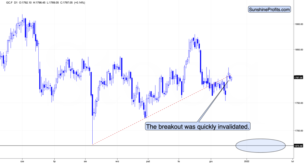 Consequently, after rallying to about $1,815 (in tune with my Thursday’s analysis) and invalidating the breakout above the rising resistance line, gold appears to be making another attempt to rally, but the strength of the move is very limited.