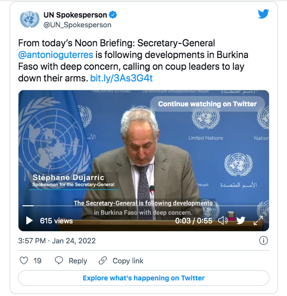 UN Secretary-General Antonio Guterres and the U.S. State Department both denounced the coup and called on members of the military to lay down their arms and address their concerns through dialog.