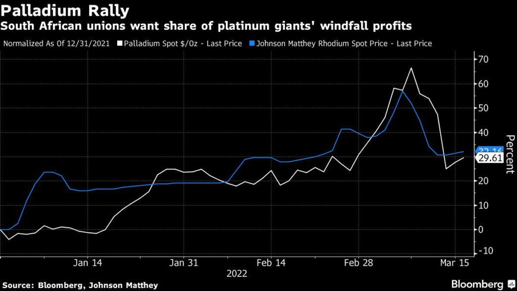 Johannesburg-based miners announced record dividends after the price of palladium and rhodium — produced alongside platinum in South Africa — rallied. Still, the companies warn that a wage settlement with about 163,000 workers must not threaten the long-term viability of a key export industry.