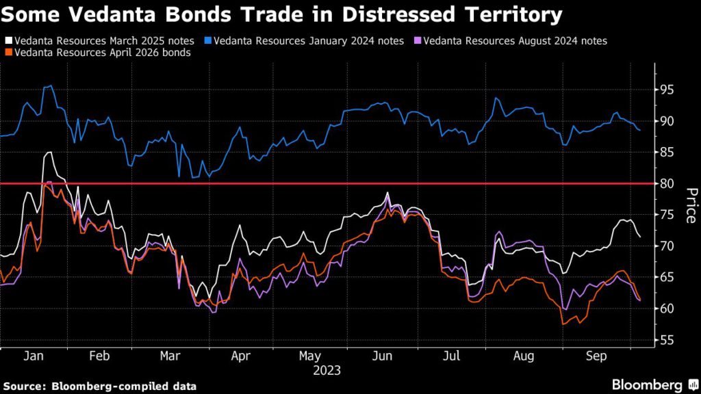While equity investors gave the demerger plan a thumbs up, Vedanta’s dollar bonds have tumbled. Of the four notes, three are trading below the 80 cents-on-the-dollar mark typically considered distressed.