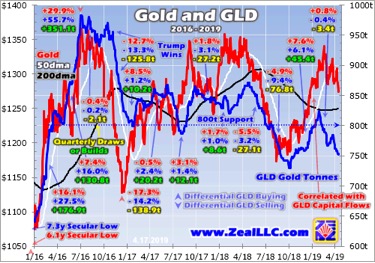 GLD is a behemoth, holding 752.9 metric tons of physical gold bullion in trust for its shareholders this week. According to the World Gold Council, GLD is the world’s biggest gold ETF by far. At the end of Q4’18 its gold holdings were 2.8x larger than its next-biggest competitor’s. GLD commanded nearly 3/7ths of the total gold bullion held by the world’s top-10-largest physical-gold-backed ETFs, a vast amount!