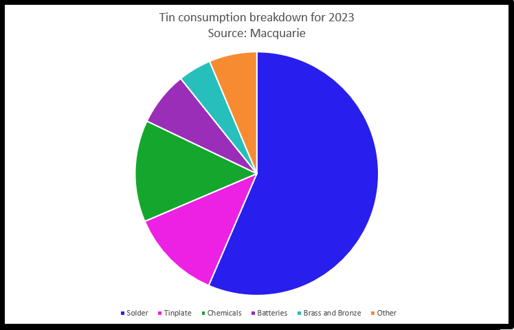 Macquarie had expected a tin market surplus of 5,000 tonnes this year and global demand at 362,000 tonnes in March.