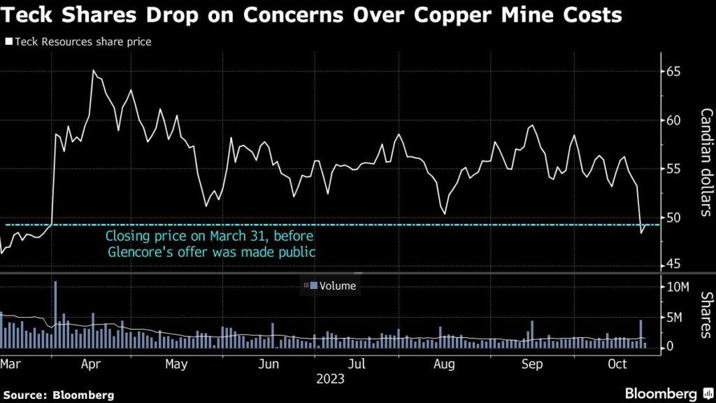 Teck’s stock had traded largely range-bound for months, as investors await the outcome of a plan to split out its coal business, while metals prices broadly have come under pressure. But a 9.1% plunge on Tuesday, after the company increased the cost estimate for its flagship copper project by an additional $600 million, erased the last of the gains since Glencore’s $23 billion bid was made public in early April.