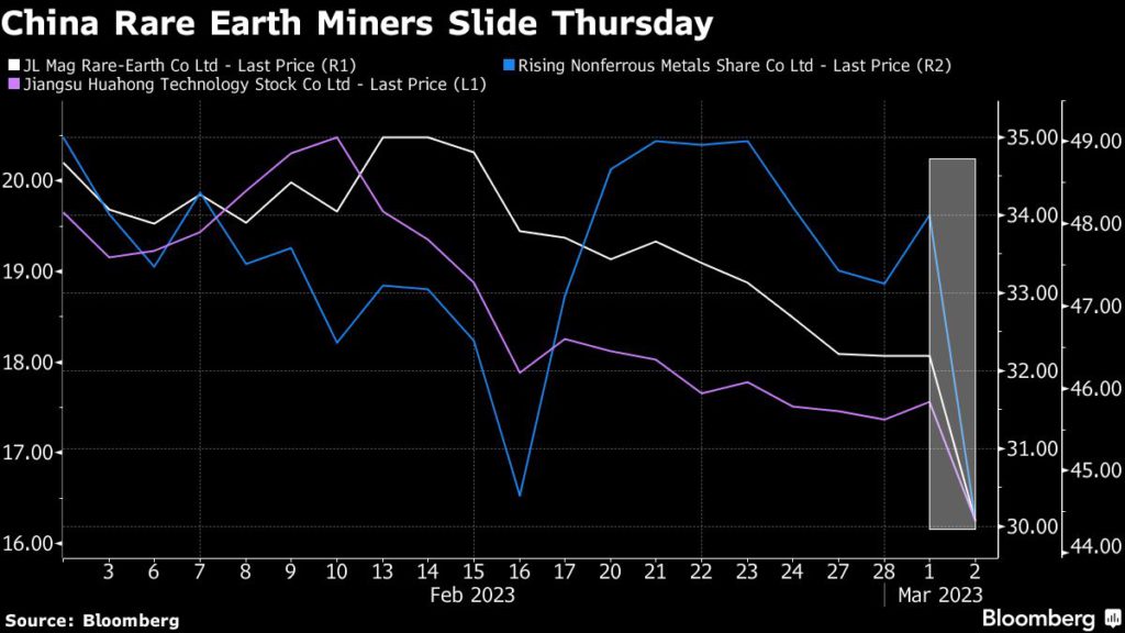 Rare-earth miners bucked an overall steady session in the CSI 300 benchmark for onshore shares, with Rising Nonferrous Metals Share Co. closing down 6.7%. In Hong Kong, China Rare Earth Holdings Ltd. finished 2% lower.