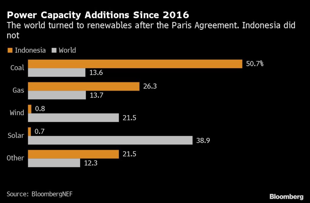 Indonesia is rich in coal, with a mining industry that leads the world in fuel exports and employs about 250,000 people. The nation also has one of the highest shares of coal power generation in its electricity mix.