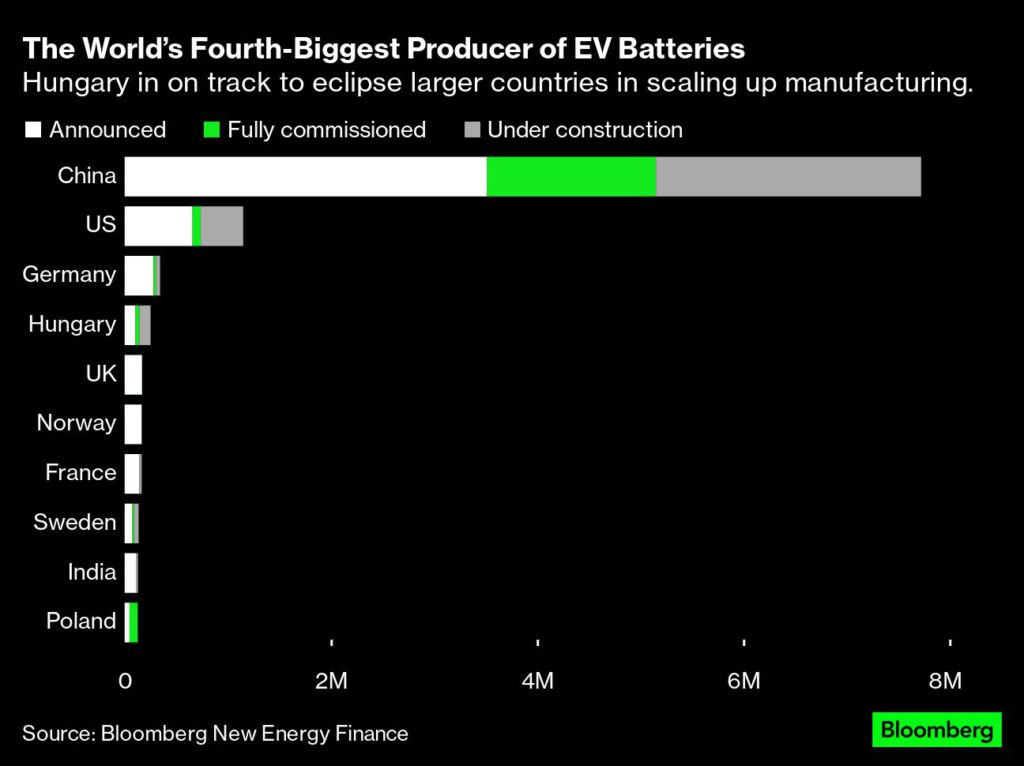 The airport-sized project by China’s Contemporary Amperex Technology Co. Ltd. is the jewel in the crown of roughly €20 billion ($21.3 billion) of investments that Prime Minister Viktor Orban says will allow the economy to thrive from Europe’s green transition. Nowhere in the world is ramping up battery production faster on a per capita basis than Hungary.