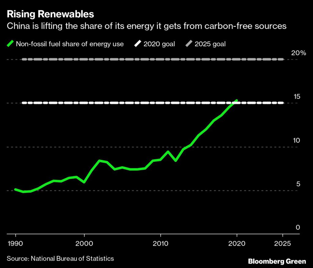 China’s target for 20% of its energy needs to be met by non-fossil fuel sources by 2025 is faster than a previous goal of reaching that mark by 2030, and it illustrates the enormous success the country has had boosting installations of solar and wind capacity in recent years. The country will continue to “efficiently” develop those sources and promote hydrogen, pumped hydropower and energy storage in the next five years.