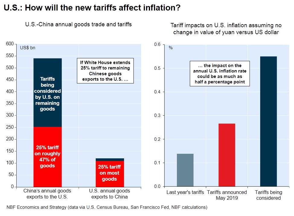 According to this chart, the current and announced tariffs could boost the CPI by 0.25% and the tariffs being considered could boost the CPI by 0.55%.
