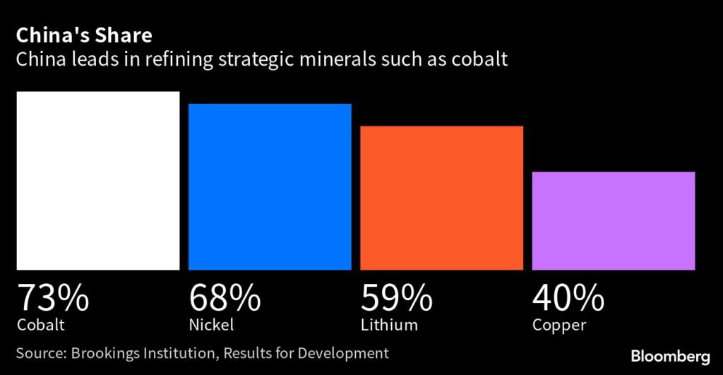 China is a dominant player in the business of processing minerals, refining the majority of nickel, copper, cobalt and other resources key to economic growth and green-energy technologies. With initiatives such as the Inflation Reduction Act, the US is seeking to curtail global dependence on China as the strategic competition between the two nations increases.