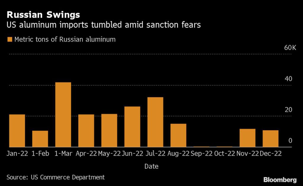 The move against aluminum also continues efforts by the US and European Union to blunt Russia’s role as global commodities powerhouse. The EU has banned imports of Russian oil, gas and fuels in an attempt to cut its reliance on Moscow. The impact of that move, however, has been mitigated by a redrawing of the global oil trade map, with most crude supplies going now to China and India at lower prices.