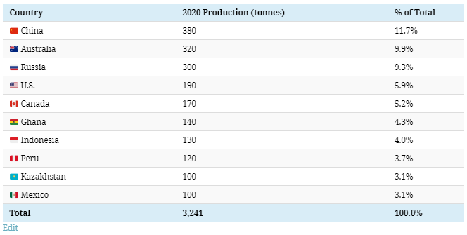 Gold production by country