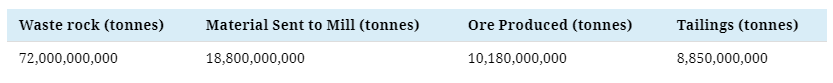 According to the USGS, 72 billion tonnes of material produced just over 10 billion tonnes of ore. Only 14% mined material makes it to processing for metals.
