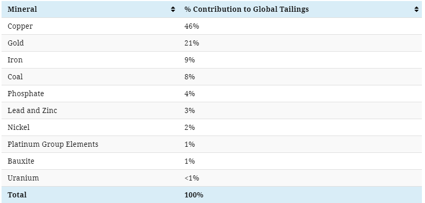 Not all minerals are equal: Tailings contribution by commodity