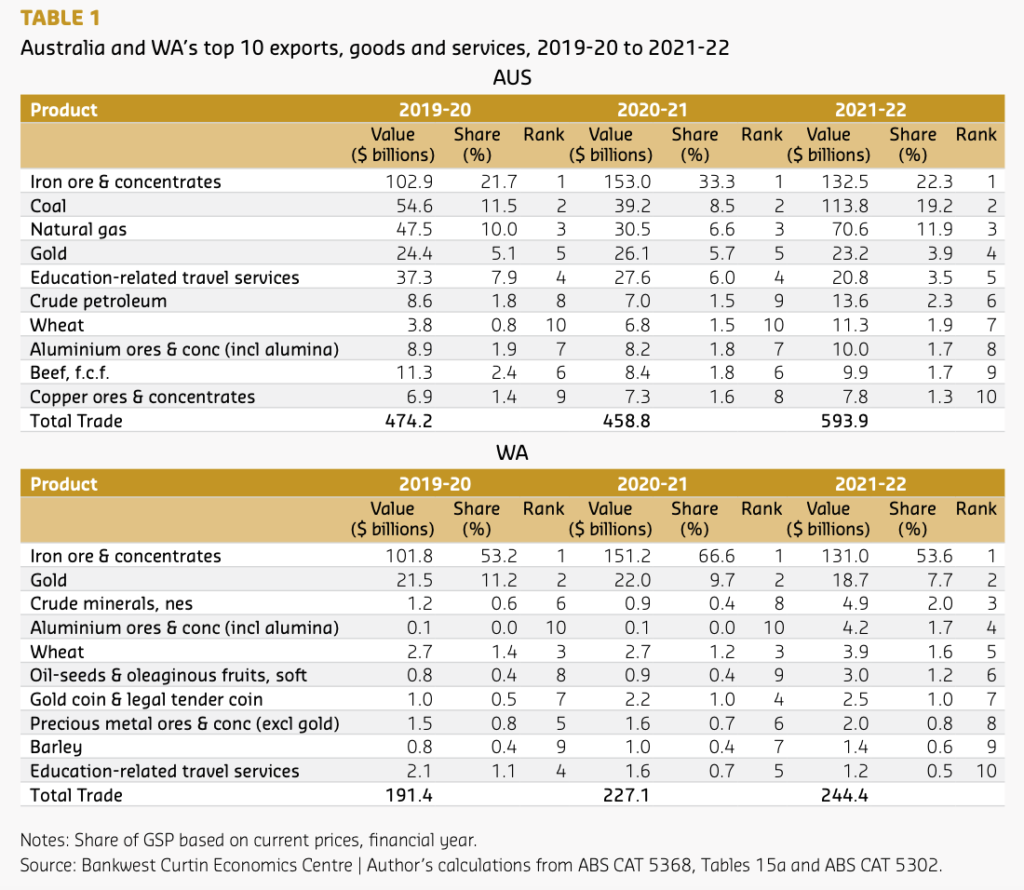 According to the report, WA’s economic resilience to the pandemic has been the envy of other states, with goods exports in 2021-22 accounting for 59% of WA’s economy as measured by Gross State Product (GSP), compared to national exports which contributed 23% to the Australian economy.